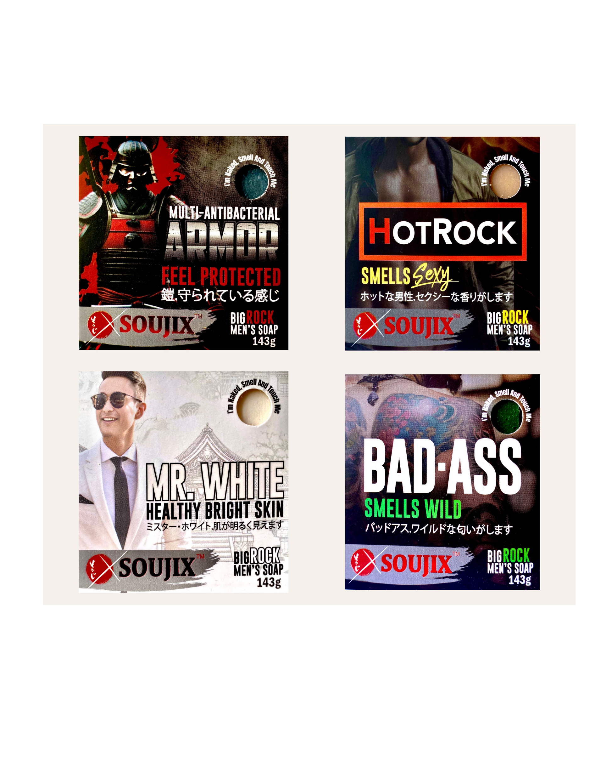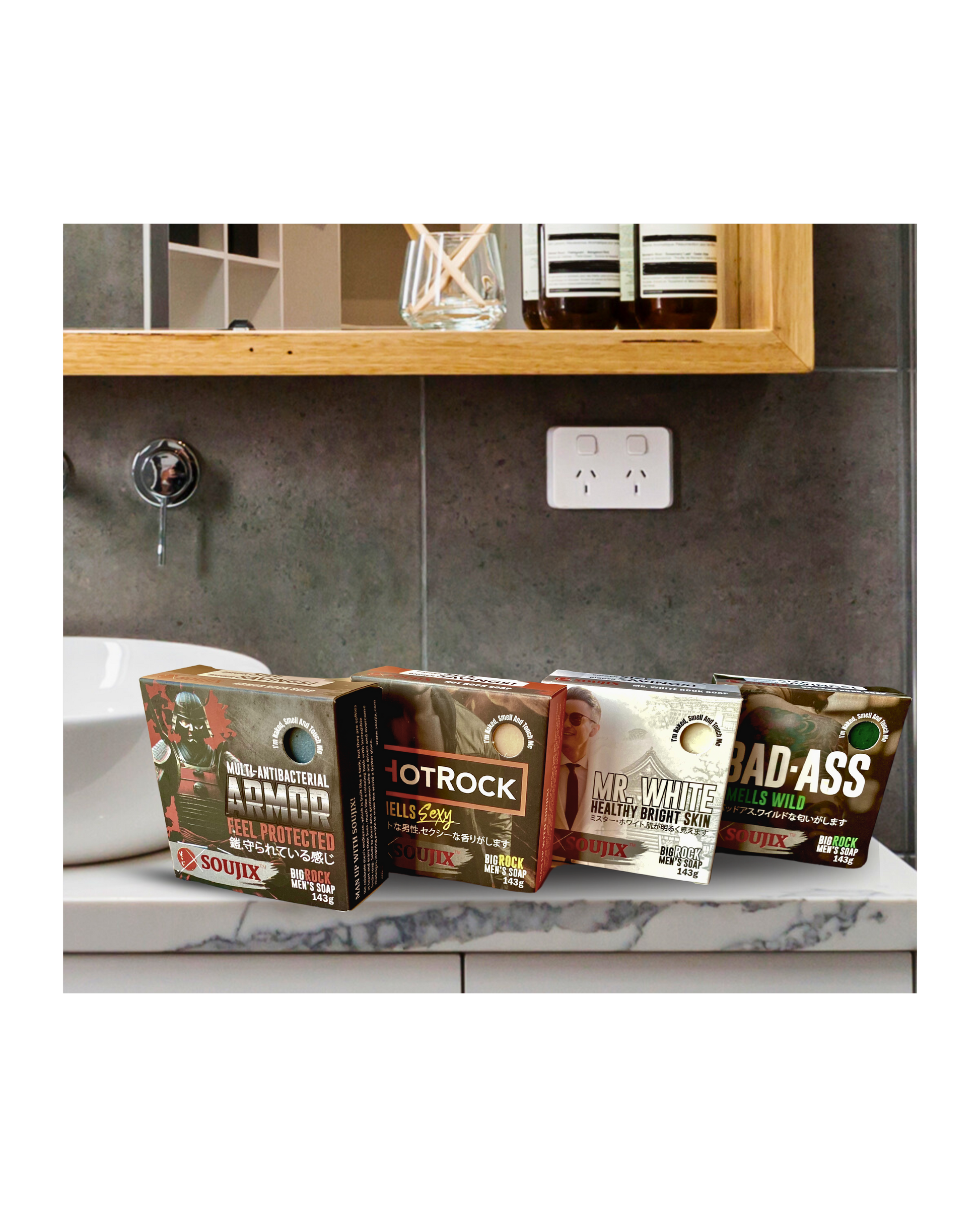 Four Mighty Soaps, a cleansing force, Unleash the power, change your course! Gear up for an epic bath experience with our lineup of four dynamic rock soaps. Each rock soap boasts its own special characteristics, with the power to blend seamlessly with your skin. Upgrade your grooming game today and step out feeling fresh, smooth, and ready to conquer.