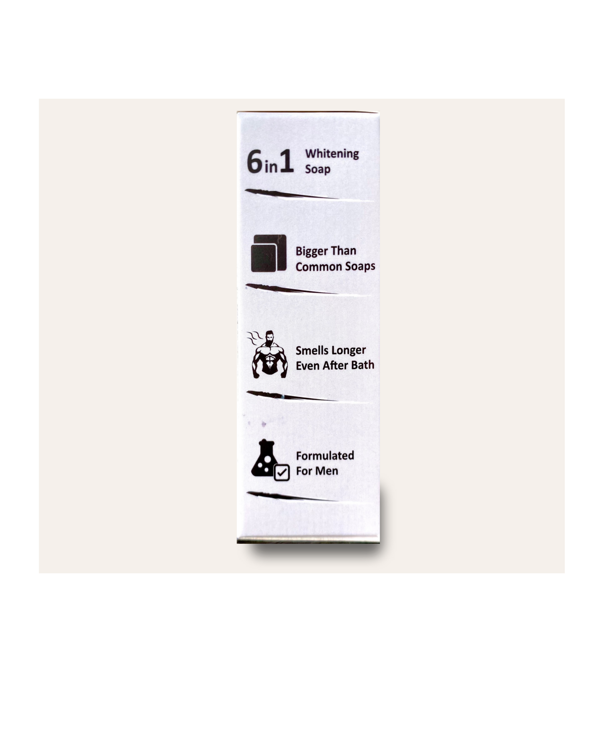 Is it brightening? Certainly! It’s a 6-in-1 WHITENING AND BRIGHTENING SOAP. Unleash your inner radiance, forget about filters and embrace natural flawlessness with our premium whitening soap for men. Unveil a brighter, even-toned complexion while enjoying the new and extraordinary scent of crisp citrus.