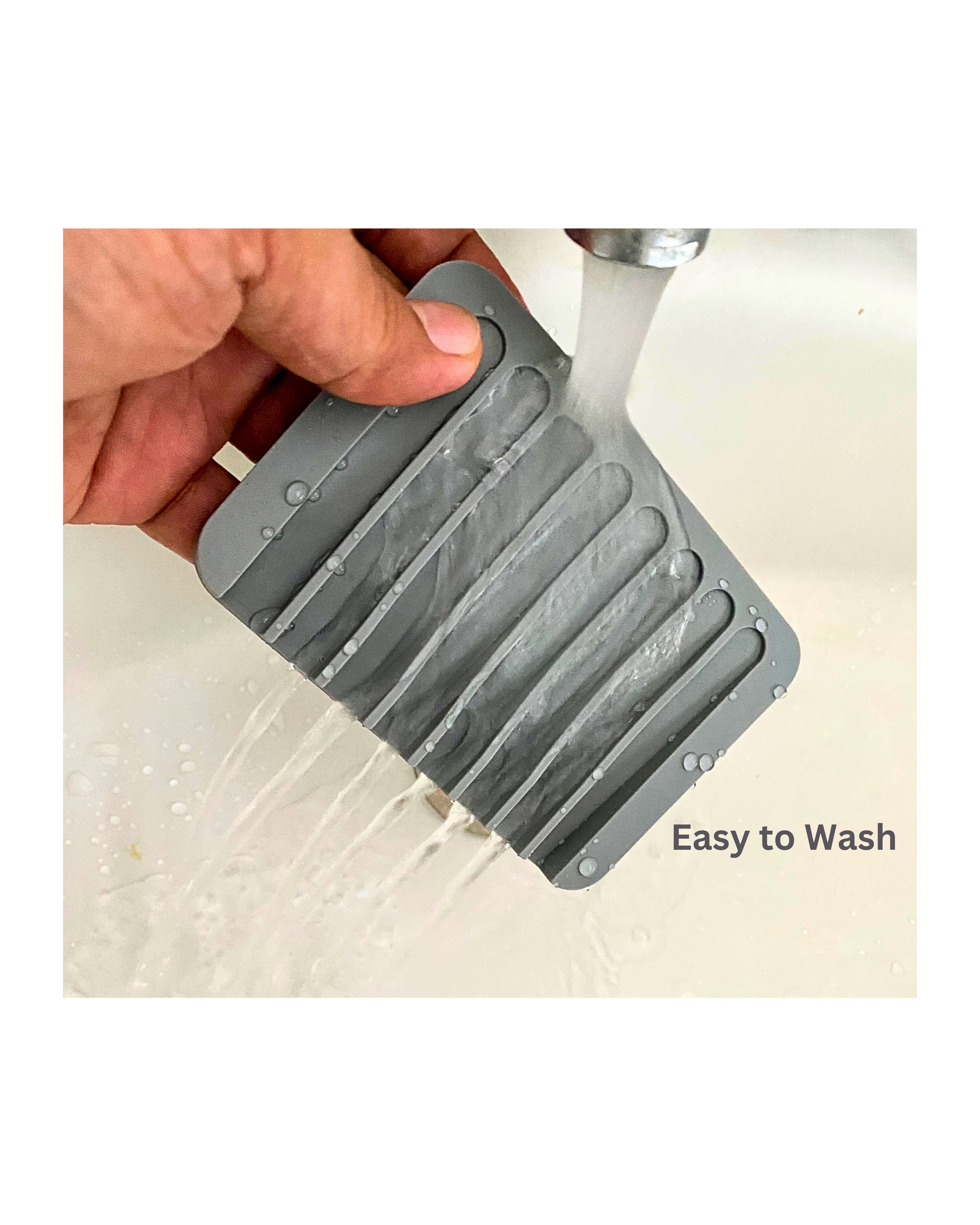 The soap saver is made of high-quality flexible silicone with a sleek, stylish design.